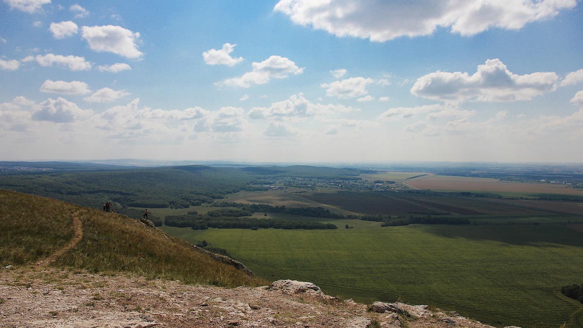From the top of these mountains there is a beautiful view of the flat relief of the Bashkir land, Sterlitamak city, the second largest city of Bashkortostan, Belaya river, as well as the ruins of GULAG barracks, of which only the walls remained.